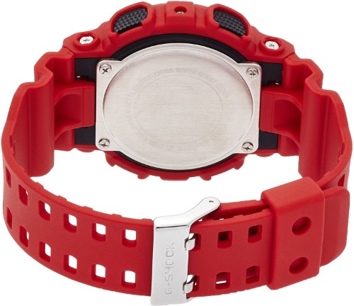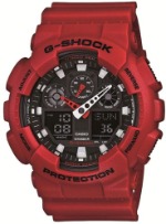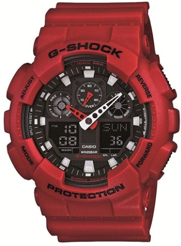 G-SHOCKはブラックカラーが特に人気ですが、レッドカラーの「GA-100B-4AJF」も好評です。