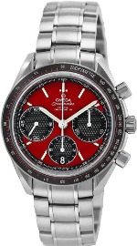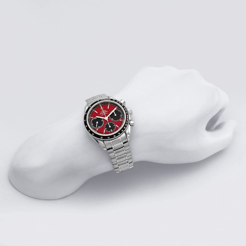 スピードマスターの「326.30.40.50.11.001」は赤色文字盤に黒色のクロノグラフカウンターがクールでかっこいい印象を作ります。
