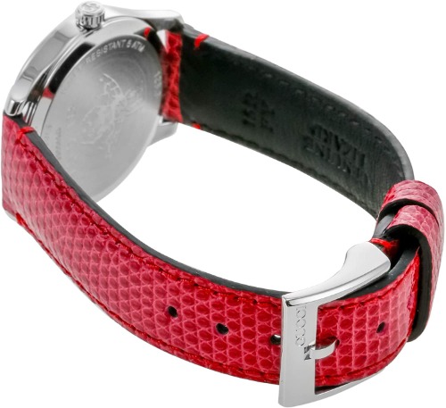 腕時計の赤色文字盤はパッと目を引くインパクトが魅力