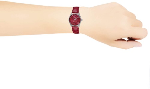 シチズンの「EW5529-55W」は多くの人が見惚れるようなワインレッドシェルが文字盤に採用されたレディース腕時計です。