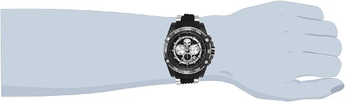 Invictaとマーブルのコラボ腕時計「26859」は12時の位置にスカルフェイスがデザインされ、ワイルドでかっこいい雰囲気の腕時計に仕上がっています。