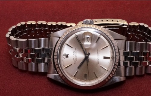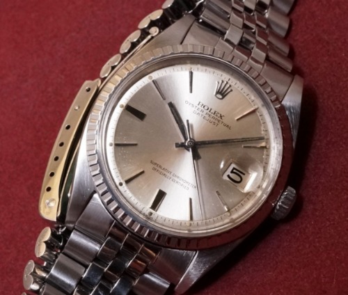 スイス製の5連バンドのデイトジャストで、60年代に製造されたアンティーク感のある腕時計です。高精度ムーブメントが搭載されていて、日差10秒以内に収まる抜群な精度を出しています。オリジナルブレス付きで付属品多数の貴重なモデルです。