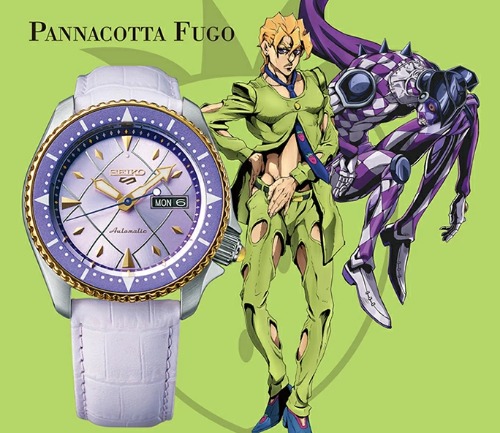 ダイアルはパープル・ヘイズの全身に見られるツギハギ模様を再現し、フーゴの知的さも感じられる腕時計となっています。