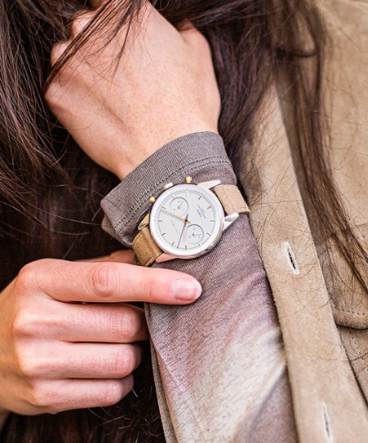 特徴 | ・デュアルタイム表示機能 ・スリムな36mmサイズ | ・ナチュラルなベージュカラー ・ON・OFF問わず使える | ・美しいシルバーカラーダイヤル ・日付・曜日表示 |