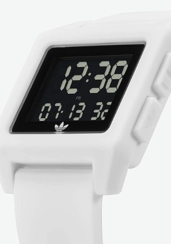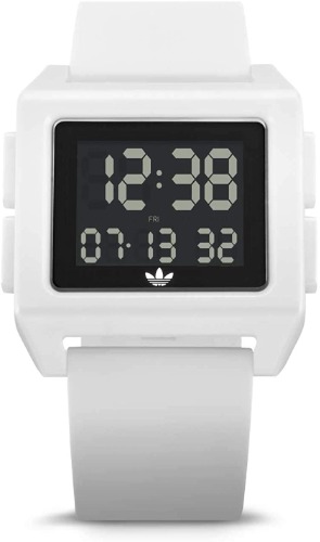 デジタルダイヤルとシリコンバンドを備えた、スタイリッシュでレトロな雰囲気があるアディダスの白い腕時計です。飽きのこないデザインなので長く使用することができるでしょう。