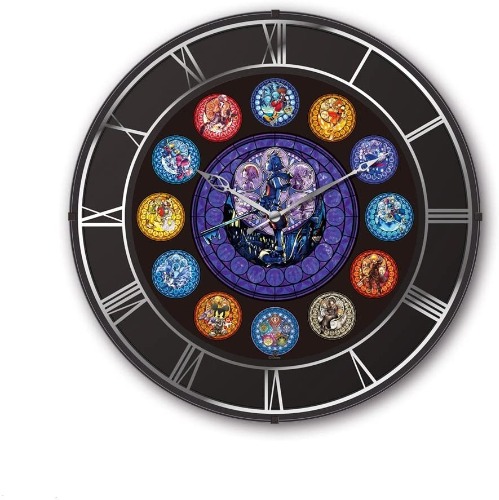 スクウェア・エニックスは王冠型の置時計だけでなく、壁掛けタイプのステンドグラス風電波時計も発売しています。