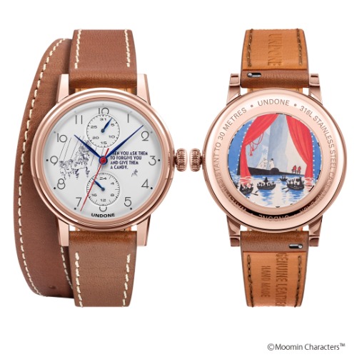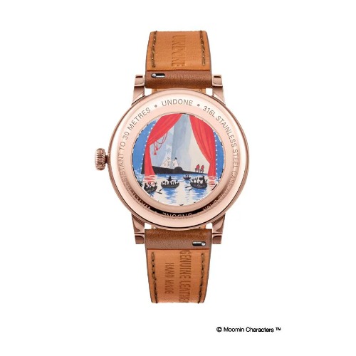 アンダーンの75周年記念数量限定モデル、小説『ムーミン谷の夏まつり』のデザイン腕時計です。