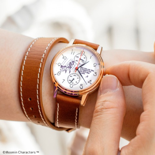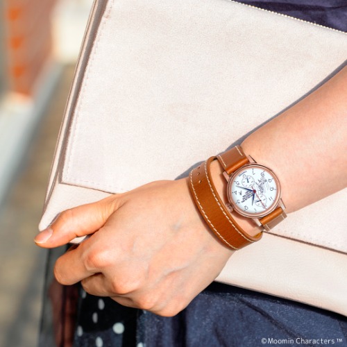 ムーミンの小説75周年を記念して数量限定で生産されたアンダーンの腕時計は、ベルトが二重に巻けるようになっているおしゃれなデザインです。