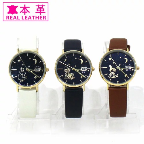 夜空を見上げるムーミンや、北欧デザインのQ&Qなど、さまざまなデザインの腕時計が販売されています。