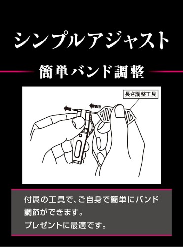 さらにクロノグラフ機能が搭載されている上に、シンプルアジャストでベルト調整も行いやすいです。