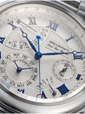 ムーンフェイズとクロノグラフが搭載されている実用的で高級感があるシェルマン(SHELLMAN)のメンズ腕時計です。2100年までの永久カレンダーも搭載されていて実用的なので、主にビジネスマンから支持されているモデルです。