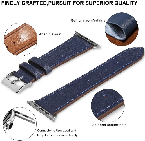 評価:ダークブルーを購入しました。Apple Watchはシリーズ2からのユーザーで、これまでサードパーティー製のバンドで数々の失敗も経験しています。この商品は、バンドの革の厚みもあり、Apple Watch本体との接続部品の精度も高く、今まで購入したサードパーティー製のバンドの中で一番の品質でした。