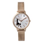 躍動感のある猫の姿がダイヤルに描かれ、1時のインデックスには触りたくなるような肉球がデザインされています。