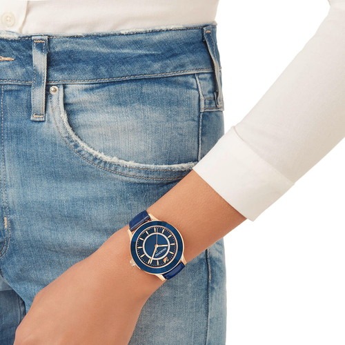 評価:ステンレスとクリスタルの組み合わせにブルーの文字盤とバンドが、とてもよく映えます。