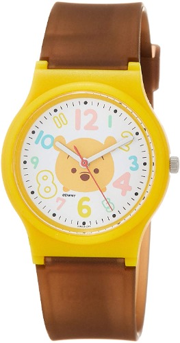 イエローとブラウンのプーさんカラーが使用されているカジュアルな可愛らしいプーさんの時計です。大人用ではありますが、中学生ぐらいのお子さんでも着用することができるので、娘さんへのプレゼントにも最適です。