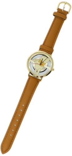 蜂蜜が入っている入れ物のブラウンカラーの合皮ベルトが使用されている、可愛らしいフェミニンな雰囲気があるプーさんとのコラボレディース腕時計です。