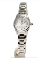 特徴 | ・ホワイトシェルダイヤル ・ダイヤモンド装飾 | ・クロノグラフ機能搭載 ・10気圧防水 | ・デイト表示機能 ・ソーラー時計 |