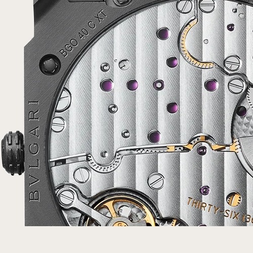 さらに、自社の複雑なムーブメントを最も極薄のケースに収める技術もブルガリの極薄への強いこだわりから実現しました。