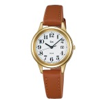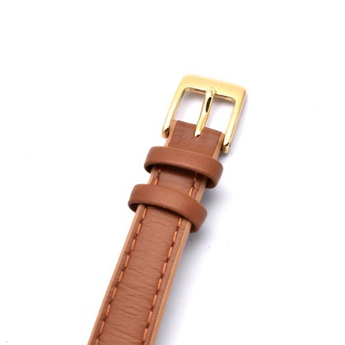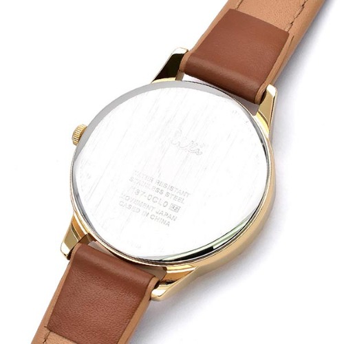 見た目は金めっきのステンレスケースにブラウンのカーフストラップと、レトロ感たっぷりのクラシカルな腕時計です。