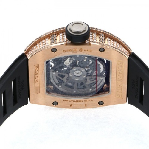RM010 AI RG W175588は、徹底的に肉をそぎ落としたムーブメントが、表からも裏からも観察できるスケルトン仕様になっています。