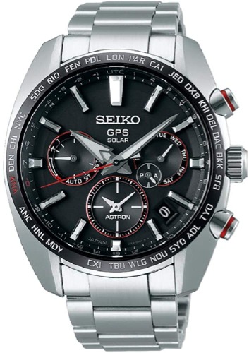 40タイムゾーンのワールドタイム機能やGPS衛星電波受信などの最新の優れた機能が搭載されている、スタイリッシュで男らしい印象があるセイコーのアストロン腕時計です。