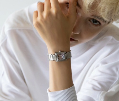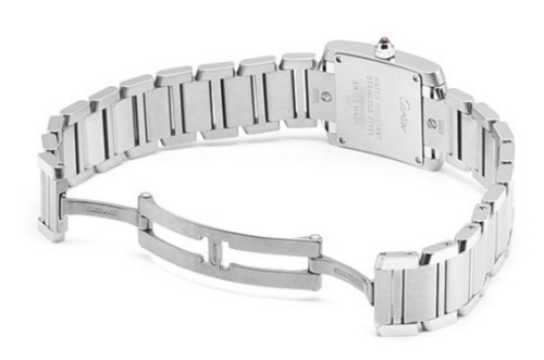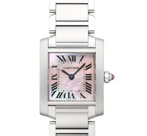 ステンレス製でシンプルなフォルムですが、ピンクシェルが文字盤に使用されており針はブルーカラーで視認性も良くてデザイン性も高いと高く評価されているカルティエのレディース腕時計です。