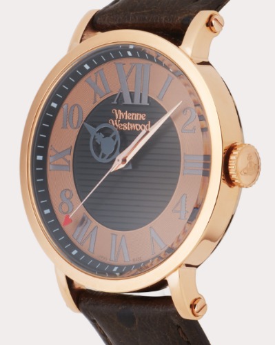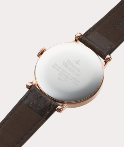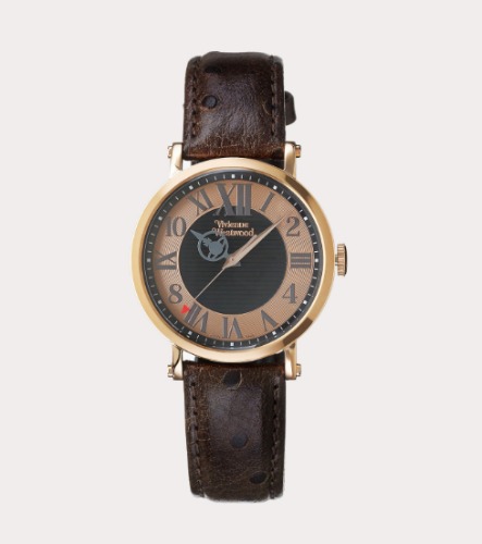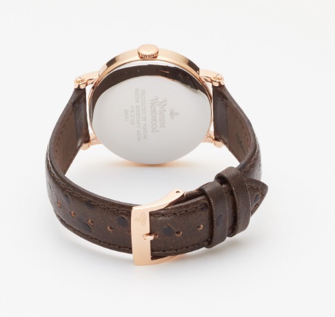 ブラウンカラーの温かくて高貴な雰囲気がある大人っぽいデザインで、20代後半からの働く女性たちに支持されているヴィヴィアンウエストウッドのレディース腕時計です。秒針が特徴的で他のブランドにはないオリジナリティに溢れたモデルです。