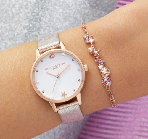フリーアナウンサーの宇垣美里さんが着用している品のあるオリビアバートンのレディース腕時計です。爽やかでありながら上品さもあり、さらに付属品としてブレスレットついてくるのでコスパも抜群です。