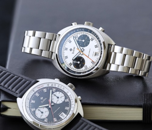 光沢感があるシルバーカラーの文字盤にブラックカラーのクロノグラフが搭載されており、まるでパンダをイメージさせるデザインで可愛らしいと評判のメンズ腕時計です。