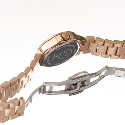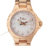 Maxiの白蝶貝×スワロフスキー 5151-012-5は、ピンクゴールドカラーがとても色鮮やかな腕時計です。