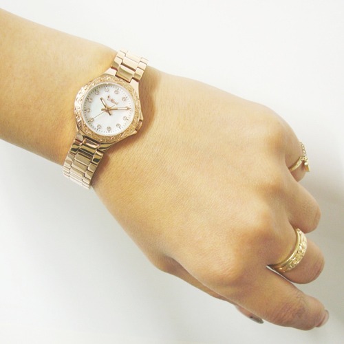 指輪やバングルをはじめ、腕時計にもハワイアンジュエリーの図案が応用されています。