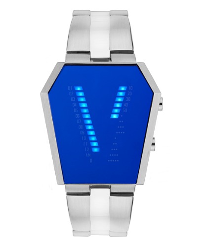 文字盤にはLEDがVの字型になって並んでおり、それぞれの輝きで時間を教えてくれます。