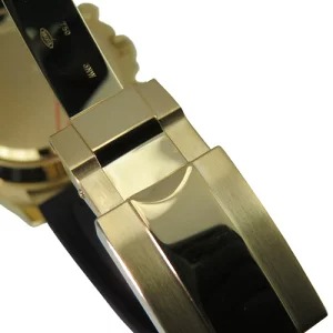 評価:K18YGケースとオイスターフレックスブレスレットの組み合わせで、よりスポーツ感が出ています。しかも、軽量で、スマートに金無垢を着用できますね。あと、バックル部のアジャスターを使って簡単に5㎜のサイズ調節が可能なとところも気に入っています。