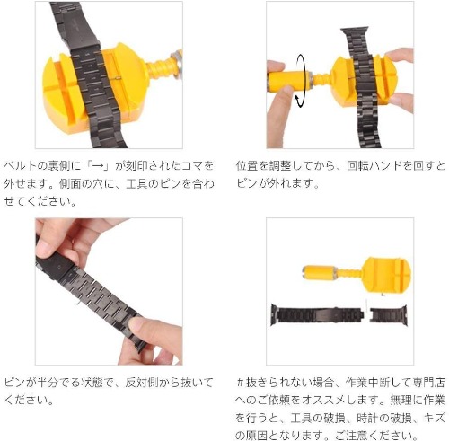 調整工具やスペアピンなどもセットになったお得なベルトです。