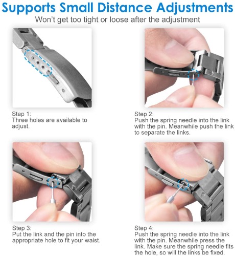 評価:デザインに満足しているのはもちろんのこと重量感、腕から外すときの簡単さにも満足しています。日常はスポーツバンドですが、冠婚葬祭ではこちらのステンレスバンドに変えて使っていきたいと思いました。
