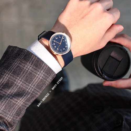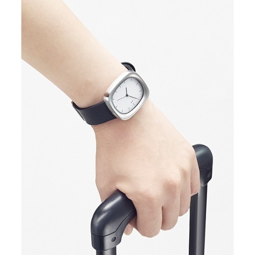 特徴 | ・定規の目盛りを模した インデックス ・インデックスはガラスの 内側に印字されている | ・飛行機の窓を模した ケースデザイン ・さまざまなタイプの ストラップと合わせられる | ・一本だけのストラップ がバックルと一体化 ・表向きにしたまま 腕時計を装着できる |