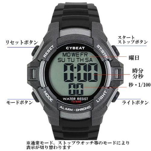 CYBEATは、低価格ながらとても見やすい表示のデジタル腕時計です。