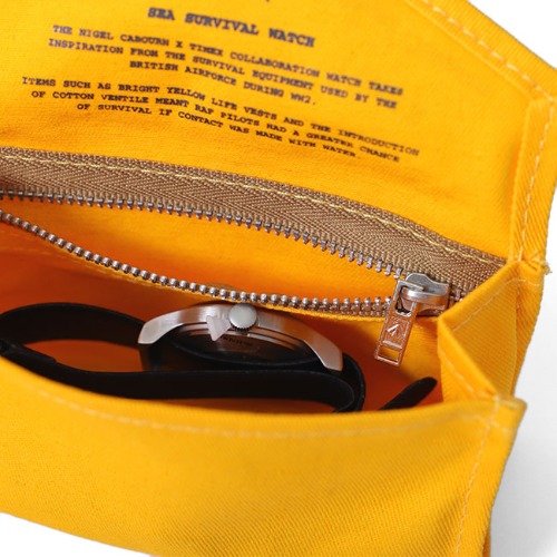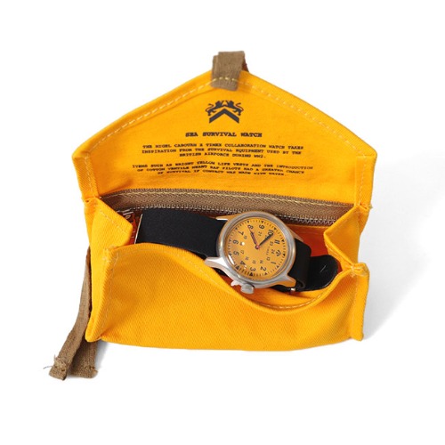 この時計のデザインは、第二次世界大戦中にイギリス空軍が使用していた、鮮やかなイエローのライフベストやRAF(王立空軍)が落水の際延命できるように開発された、コットンヴェンタイルからインスピレーションを受けています。