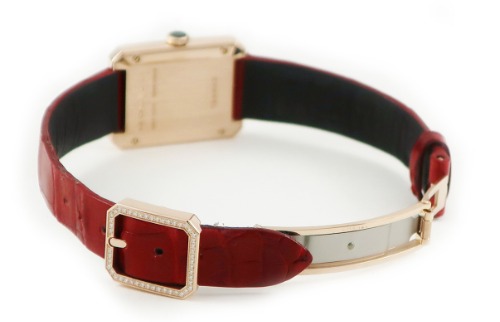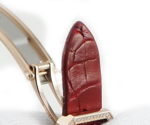 こちらのボーイフレンドは、ベゼルとベルトの金具に純正ダイヤモンドが装飾されており、クラシカルな上品なボーイフレンド腕時計です。レッドカラーのアリゲーターベルトがインパクトがあり、アクセサリー感覚で着用することもできる大人な腕時計です。