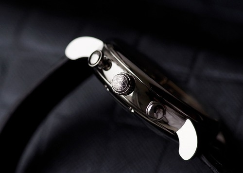 落ち着きのあるブラックダイヤルとクロノグラフのインダイヤルがスポーティーでかっこいい印象を作ります。
