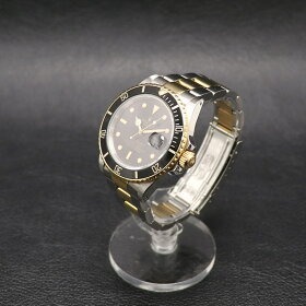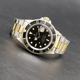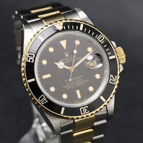 ロレックスの人気モデル・サブマリーナーデイトのRef.16803は、サブマリーナーの旧型となる黒とゴールドのコンビモデルです。