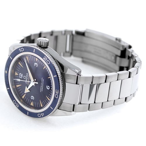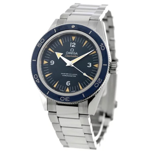 オメガのシーマスター300 マスターコーアクシャル「233.92.41.21.03.001」はスポーティーなデザインが特徴的で、ブルーカラーが爽やかと人気があります。