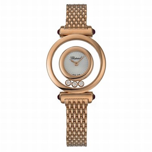 ショパール(Chopard)のハッピーダイヤモンド 204780-5401は、ローズゴールドのケースでできた垣根の中をダイヤモンドがころころ走る可愛い腕時計です。