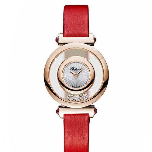 ショパール(Chopard)のハッピーダイヤモンド 204780-5201は、レッドカラーのストラップとローズゴールドのケースが華やかな腕時計です。