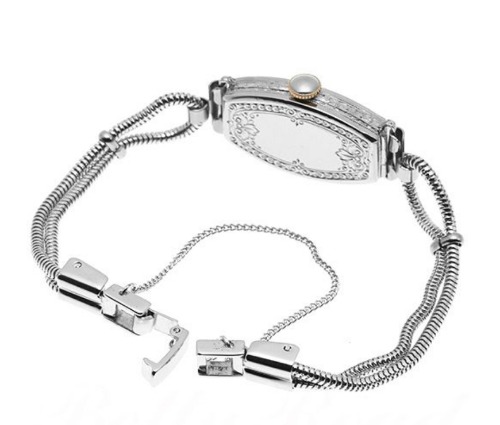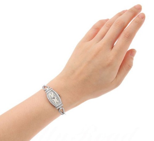 評価:腕時計というよりは、ティファニーのブレスレットのようなデザインで、ジュエリー感覚で身に付けることができる腕時計です。かっちりとしたスーツにも合うし、フェミニンなワンピースにも合わせることができいるデザインです。