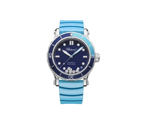 ショパール(Chopard)のハッピーオーシャン278587-3001は、ターコイズブルーのラバーベルトがまばゆいダイバーズモデルの腕時計です。