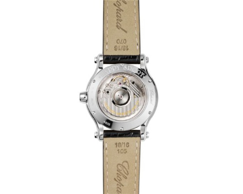 ショパールの278551-3002は、ブラックの文字盤に丁寧なヴァーグ彫りを施した美しい腕時計です。