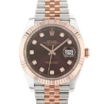 ブラウンダイヤルが個性的かつ上品な印象を作るとともに、ダイヤモンドインデックスがエレガントな仕上がりです。