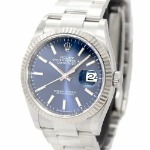 評価:最近はブルー文字盤のデイトジャストも入手困難になりました。デイトジャストといえども滅多に並ばないレアピースです。それもその筈、ブルー文字盤の美しさ、ジュビリーブレスの美しさ、フルーテッドベゼルの美しさ、36mmのサイズ感、どれを持っても流石はロレックス、まさにマスターピースだと思います。