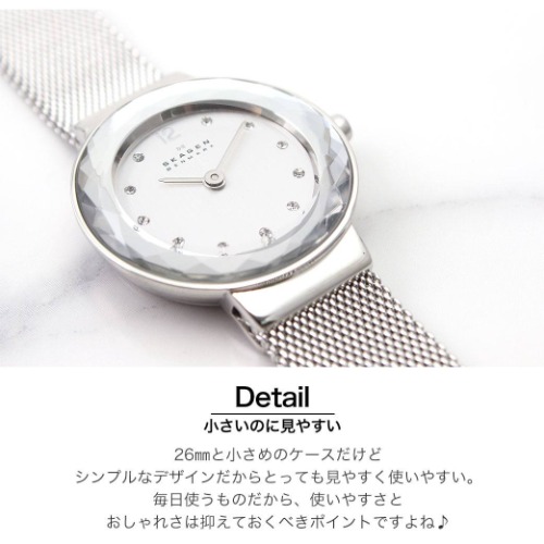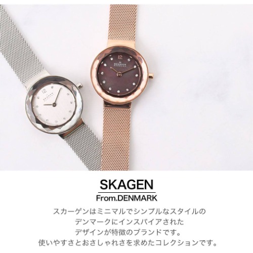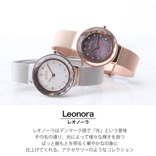 スカーゲンはファッションウォッチブランドとして人気が高いのですが、中でも華奢な女性の印象を作ることができると人気なのが「レオノーラ456SSS」です。